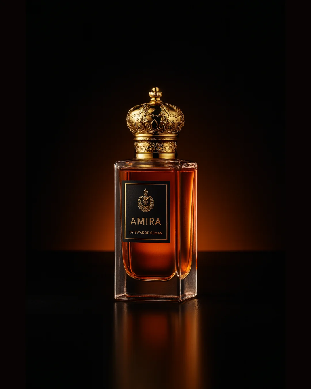 Amira opens with the soothing freshness of lavender, enhanced by the zesty warmth of ginger. The aromatic and spicy introduction is both energizing and refined, creating a vibrant opening that awakens the senses while maintaining elegance.